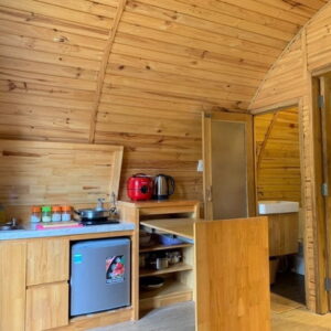 – Free nước suối, cafe, nước ngọt, mì ly + gạo, gia vị nấu ăn, bếp nướng BBQ và than
