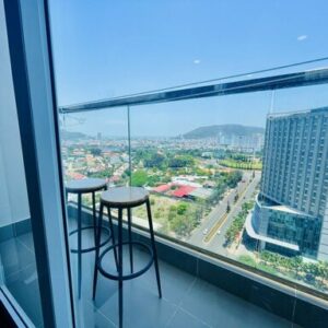 Toà nhà ngay Tháp Tam Thắng View Biển có ban công.